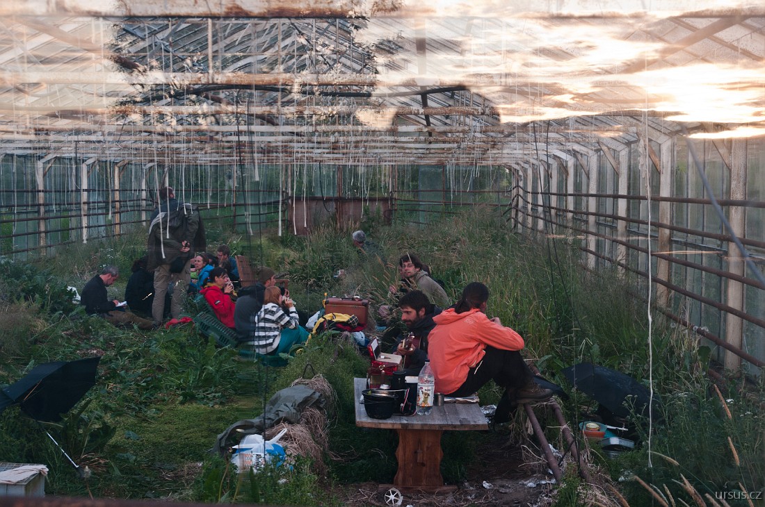My jsme jeden opuštěný skleník obsadili, jako vítaný úkryt před deštěm a větrem, a jali se debužírovat.