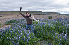 Tento islandský bojovník třímá v rukou dva nezvyklé artefakty, které vyplavilo moře. Prvním je tulení kostra a druhé je dřevo, které svou cestu oceánem začalo v Kanadě nebo na Sibiři.