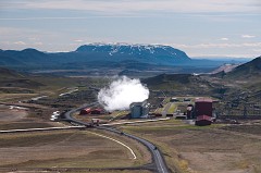 Krafla power station, elektrárna o výkonu 60MW, funguje v přímém sousedství sopky Krafla. Při předchozích erupcích byla často mimo provoz.