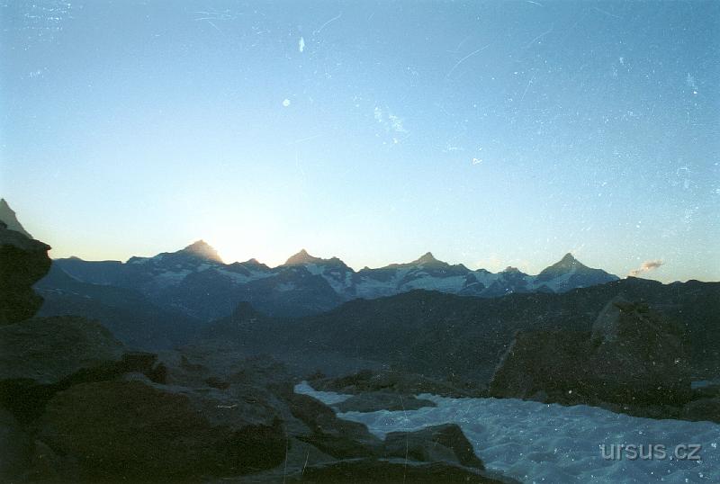 Večerní pohled z našeho prvního tábořiště ve výšce zhruba 3100m