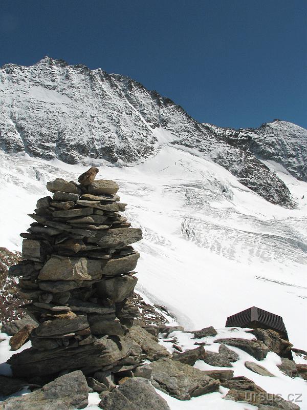 Kamenný muž(ík) značící místo bivaku Tête des Roèses