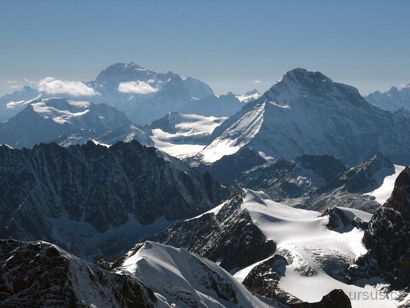 A tady jsou chlapci přiblížení. Vpravo Grand Combin (4314m) a vlevo za ním Mont Blanc (4807m)