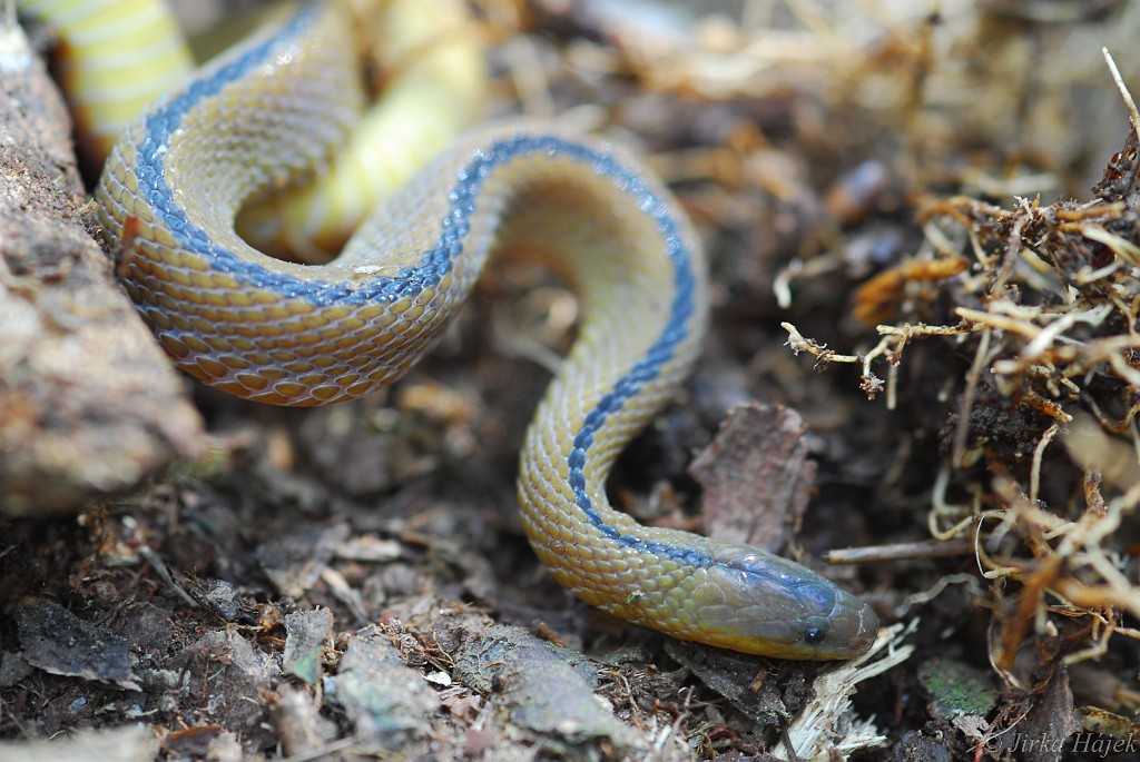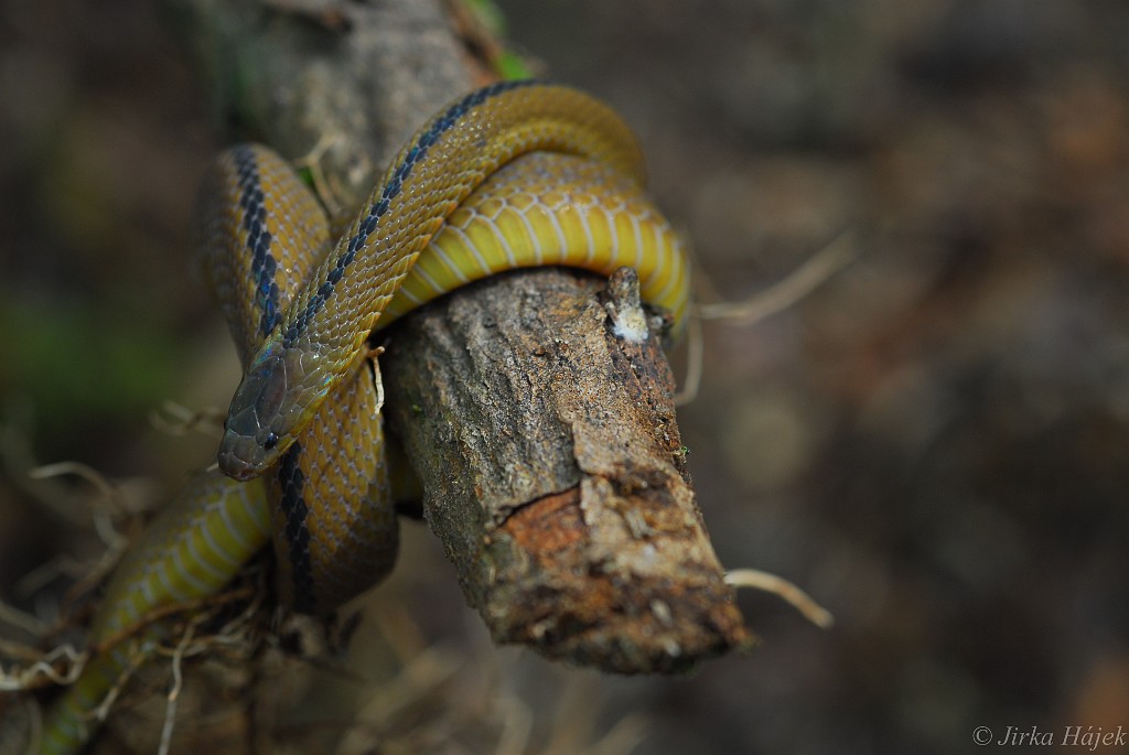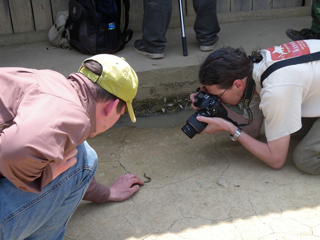 Livin našel užovku, která se furt nechtěla nechat vyfotit, takže jsme ji museli trochu přibrzdit. Vypadala neškodně. Až později nám bylo řečeno odborníky z česka, že šlo o poměrně jedovatý druh užovky (užovka tygrovaná - Rhabdophis tigrinus).