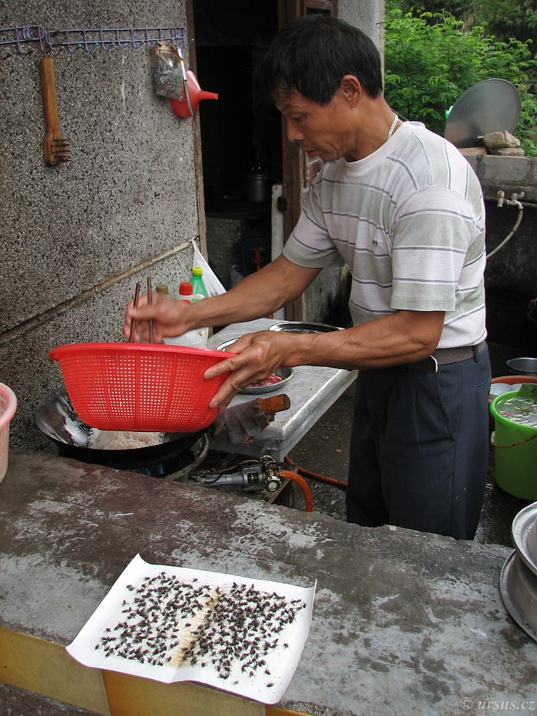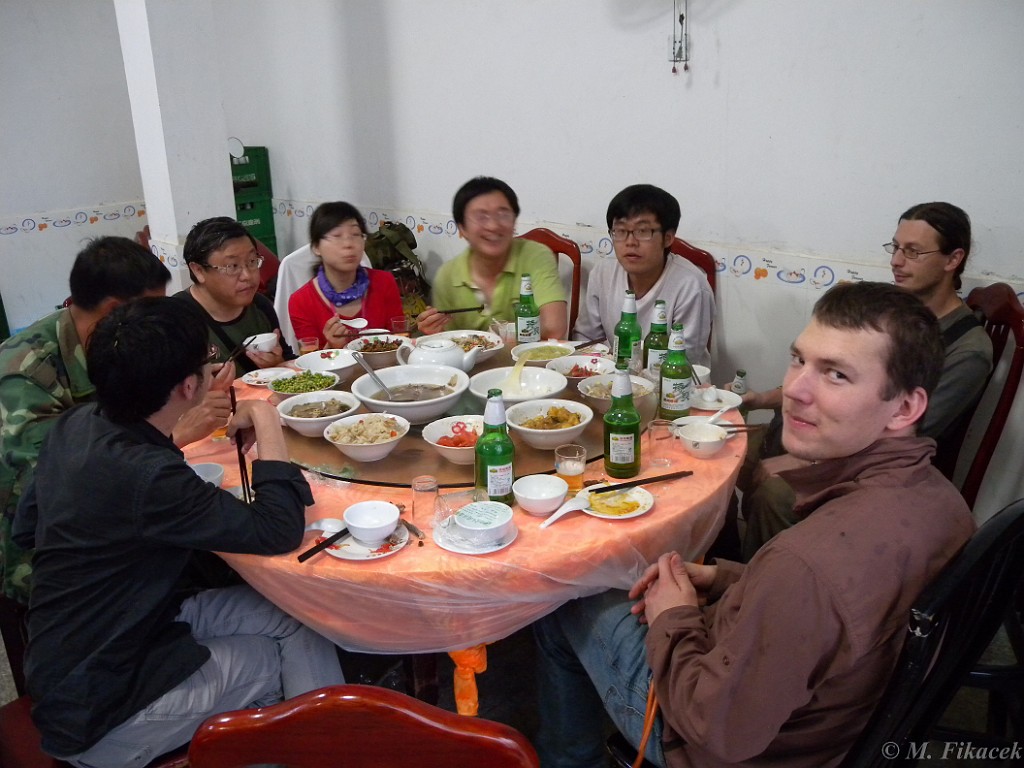 Hned po rozhovoru nás čekala opravdu ukrutně dlouhá cesta přes celý jeden horský masiv. Dojeli jsme do vesnice, kde jsme měli prý sbírat. Nestačili jsme se divit. Dvě hodiny cesty a skončíme ve městě? Čínská logika nezná mezí. Tak jsme se tu aspoň nasnídali.