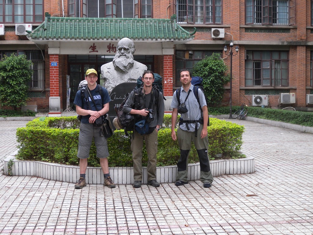 Naše první mise je u konce, fotíme se s klukama před sochou Darwina kousek od mého hotelu. Ale zůstáváme tu jen toto jedno odpoledne a zítra ráno zase sbalit a hurá do Heishidingu!
