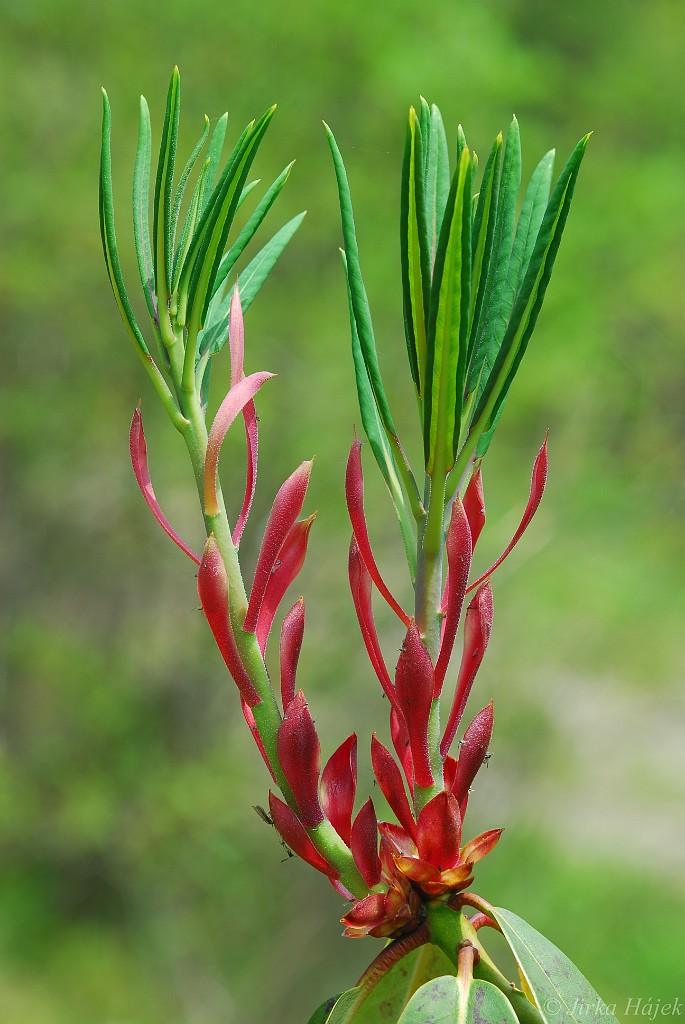 Nevím, jestli to byla nějaká forma masožravky či co, každopádně ty červené "lístky" velmi silně lepily a dokázaly na sebe nalepit spoustu hmyzu včetně potápníků z nedalekých tůňek:)