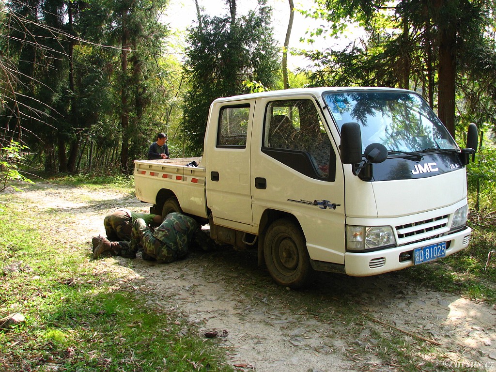 na tento "trip" musel profesor Jia sehnat speciální auto, protože s naším bysme to prý nevyjeli. No vyjeli nevyjeli, asi bysme ho zhuntovali, to je fakt. Na druhou stranu tenhle vergl taky nebyl zrovna "teréňák", příšerně to v něm skákalo, bylo to slabé a ve třičtvrtě kopce jsme navíc píchli kolo.