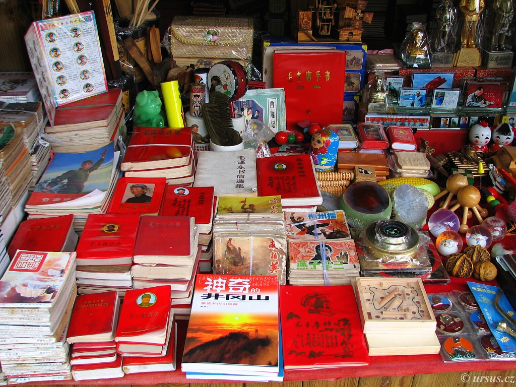Téma je ovšem lehce uniformní:) Mao drží stále pevně své kormidlo! A vlastně není tak docela pravda, že tu pořídíte na co si vzpomenete. To jediné, co jsem potřeboval a chtěl sehnat tu neměli. A to byly pohledy. Aspoň jeden jediný pohled. Ne kvůli mě, ale kvůli lidem co ho po mě chtěli. A neměli je nikde, V Číně prostě pohledy neexistují. Už téměř dva měsíce je všude marně sháním:)