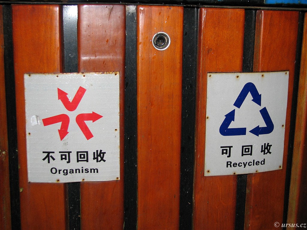 Tady prosím můžete vyhazovat organismy. Čínská angličtina nás bavila denodenně, ať už na cedulích u cesty, na dopravních značkách, na odpadkových koších, na obalech výrobků nebo třeba na tabulích naučných stezek:)