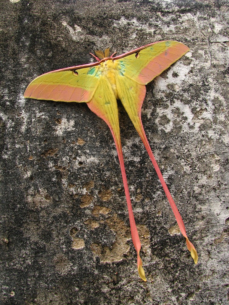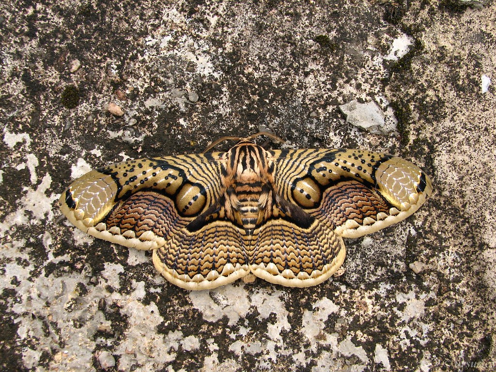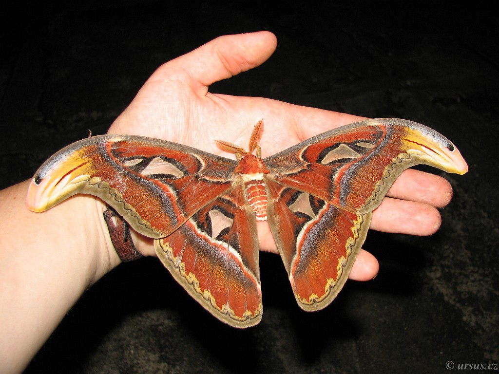 A taky jsem si mohl "potěžkat" krásného a obrovského motýla z čeledi martináčovitých, s honosným jménem Attacus atlas. Není to (aspoň v této oblasti) nijak vzácný motýl a za noc jich přiletělo několik. Jen pro doplnění, náš největší motýl je taktéž z této čeledi a jmenuje se martináč hrušňový (Saturnia pyri). Právě po něm dostala čeleď své české jméno.
