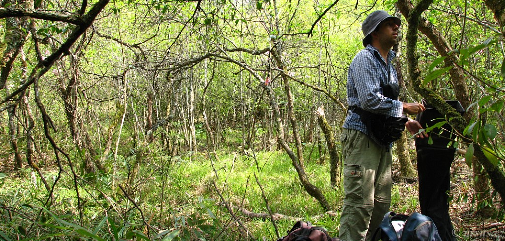 Po dalších pár kilometrech jsme dorazili do cíle. Celý den nám profesor a spol. tvrdili že cílem bude velké jezero. Tak jsme tady :ú. Po jezeru samozřejmě v duchu čínské logiky ani stopy. Ale zas tak nám to nevadilo. Místo to bylo pěkné a zajímavé. Rozsáhlé podmáčené území hustě zarostlé nízkými stromy a v tom tekly porůznu malé potůčky. Krajinářsky i entomologicky zajímavé:)