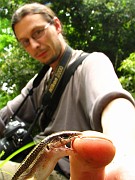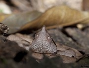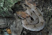 A uups, Martin narazil v lese (mimo cestu) na dalšího ploskolebce, tentokrát na malé, téměř až roztomilé mláďátko. Ale i to by člověka dokázalo jistě slušně odrovnat a tak měl velké štěstí že na něho nestoupl. Když mi ho později Jirka s Livinem ukazovali, tak jsem dobré půl minuty zíral do země a hledal. A to už ho Livin fotil, takže měl objektiv půl metru od něj a viděl jsem kam míří. Stejně jsem brejlil a neviděl. Totálně maskované zvíře...