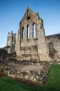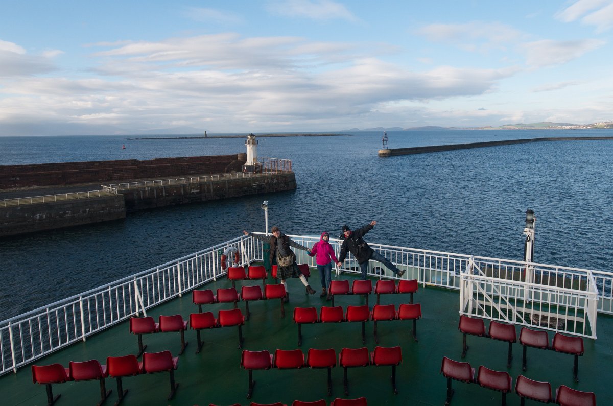 Kolem se popásají ovce, na obzoru kostelík...prostě jižní Skotsko jak vyšité. Ruina kláštera v městě Killwinning je opravdu působivá. Klášter zde byl zbudován ve 12. století na místě o 5 století staršího keltského kostelíku. V 16 století po reformaci však klášter postupně chátral, až z něj zůstala jen ruina. Na minutu přesně dorážíme do přístavu Ardossan, kde na nás čeká razerevovaný trajekt na Arran.
