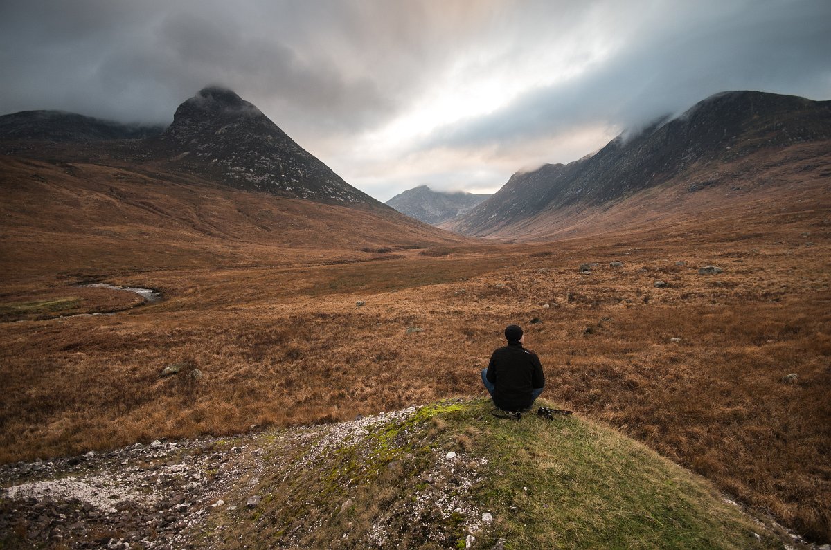 Nakonec jsem neodolal a tento tulení zápas nahrál na video. Koliha velká frčí nad mořem. Pobřeží je zde opravdu nezvyklé a barevné. Po moři se vydáváme do hor. Tedy na krátkou procházku do údolí Glen Sannox pod nejvyšší hory Arranu. Nad zlatavými podzimními pastvinami se tyčí 700 metrů vysoké skály.