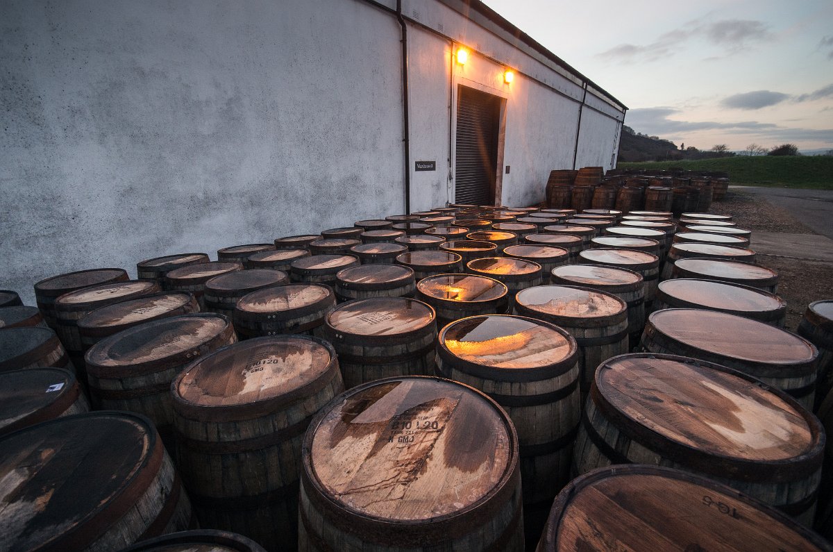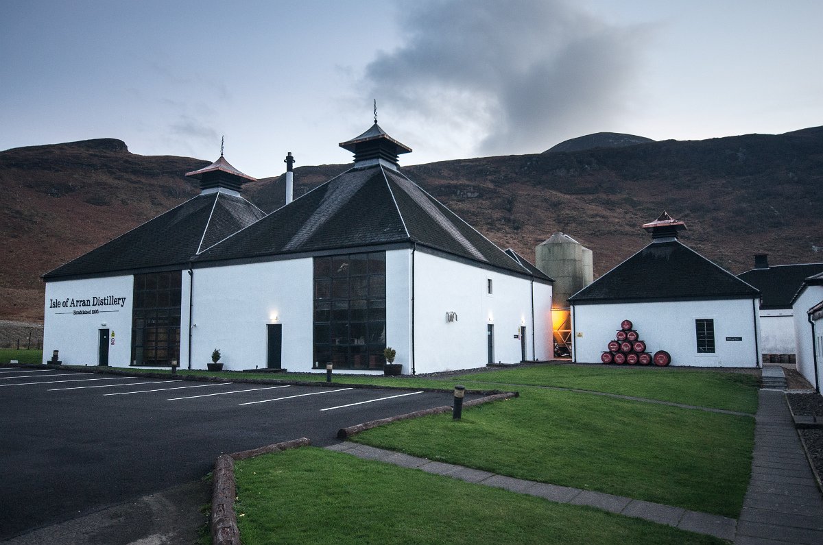 JHUS 158 Prostě potěcha pro oči i pro duši... Slunce nám zapadá už kolem čtvrté hodiny a tak jsou dny velice krátké. Ještě před setměním navštěvujeme nejsevernější městečko ostrova Lochranzu se stejnojmenným hradem... ...a hlavně slavnou arranskou palírnu whisky. Návštěvnické centrum má sice už zavřeno, ale zase tu nikdo nehlídá a tak se dostáváme na zadní dvůr palírny, kde stojí vzácné sudy připravené na další várku whisky.