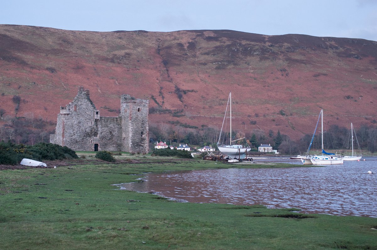 (15.11.2014)Pozdě v listopadu přijíždí na návštěvu za svou slečnou Andri můj starý dobrý kámoš Ondřej. To je pro mne pádný důvod vypravit se do Glasgow podruhé. Společně půjčujeme auto a vydáváme se na víkendový trip na ostrov Arran. Při cestě do přístavu Ardossan, který od Glasgow vzdálený 60 km, se zastavujeme v přírodní rezervaci u městečka Lochwinnoch. Stojí zde pěkné environmentální centrum pro malé i velké :) Z dolní haly i pozorovací věže envicentra míří dalekohledy na hladinu blízkého jezera, kde se to opeřenci jen hemží. Stehlíci na krmítku. Kousek od Lochwinnochu stojí venkovská tvrz Barr Castle.