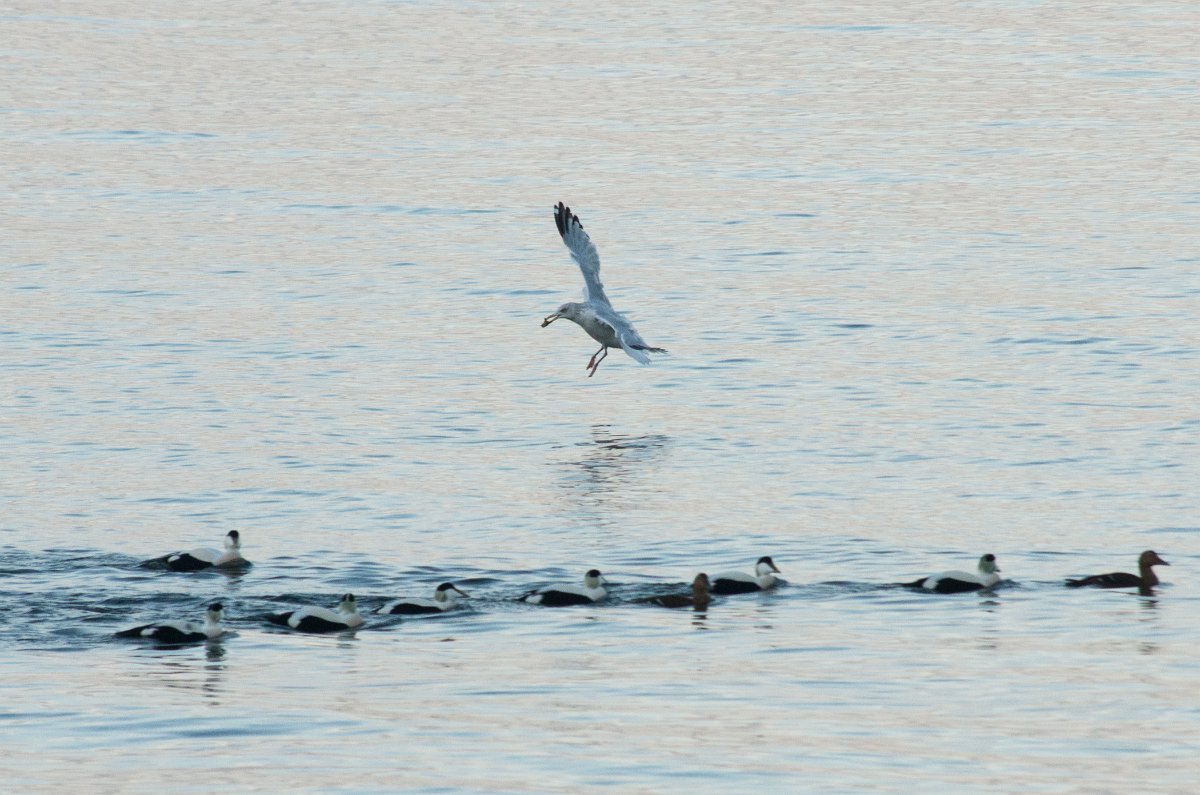"A noci jsou chladné? Tak to si budu muset vzít TEPLÉ PRÁDLO." S jedním spacákem, jedním polospacákem, jednou přikrývkou a dvěmi karimatkami jsme noc nějak zvládli  Ale zima byla pořádná! (16.11.2014)S úsvitem pokračujeme po západní straně ostrova. Z lesíka našeho sportovního Fiata zvědavě pozoruje urostlý jelen. Volavka čeká na Slunce, které vychází až po osmé hodině. Racek mořský vs. kajky mořské. Silnice na ostrově jsou poněkud komické - zvlněný asfalt připomíná horskou dráhu a ve špatně klopených zatáčkách je třeba dávat pozor.