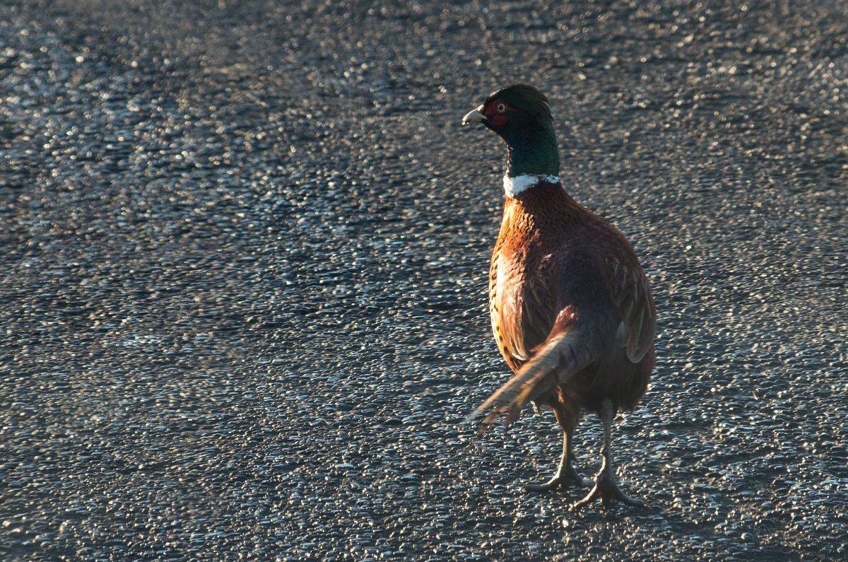 Sem tam také pod kola vletí barevný bažant. Ostrov se totiž podobá jedné velké bažantnici. Během 2 dní jsme viděli několik desítek kusů těchto opeřenců. Krajina ostrova je velice rozmanitá - z hornaté oblasti na severu postupně klesá, nastupují pastviny s stovkami ovcí a lesy, které jsou jak smíšené, tak "české" smrkové monokultury. Na jihu pak najdeme i pole a sady. Tož jsme v Británii, jak potvrzuje i poštovní schránka Royal Mail. Podobně, jako na jiných místech ve Skotsku, zde můžeme najít neprostupné porosty trnitého keře hlodáše. Ukázkový půdní profil.