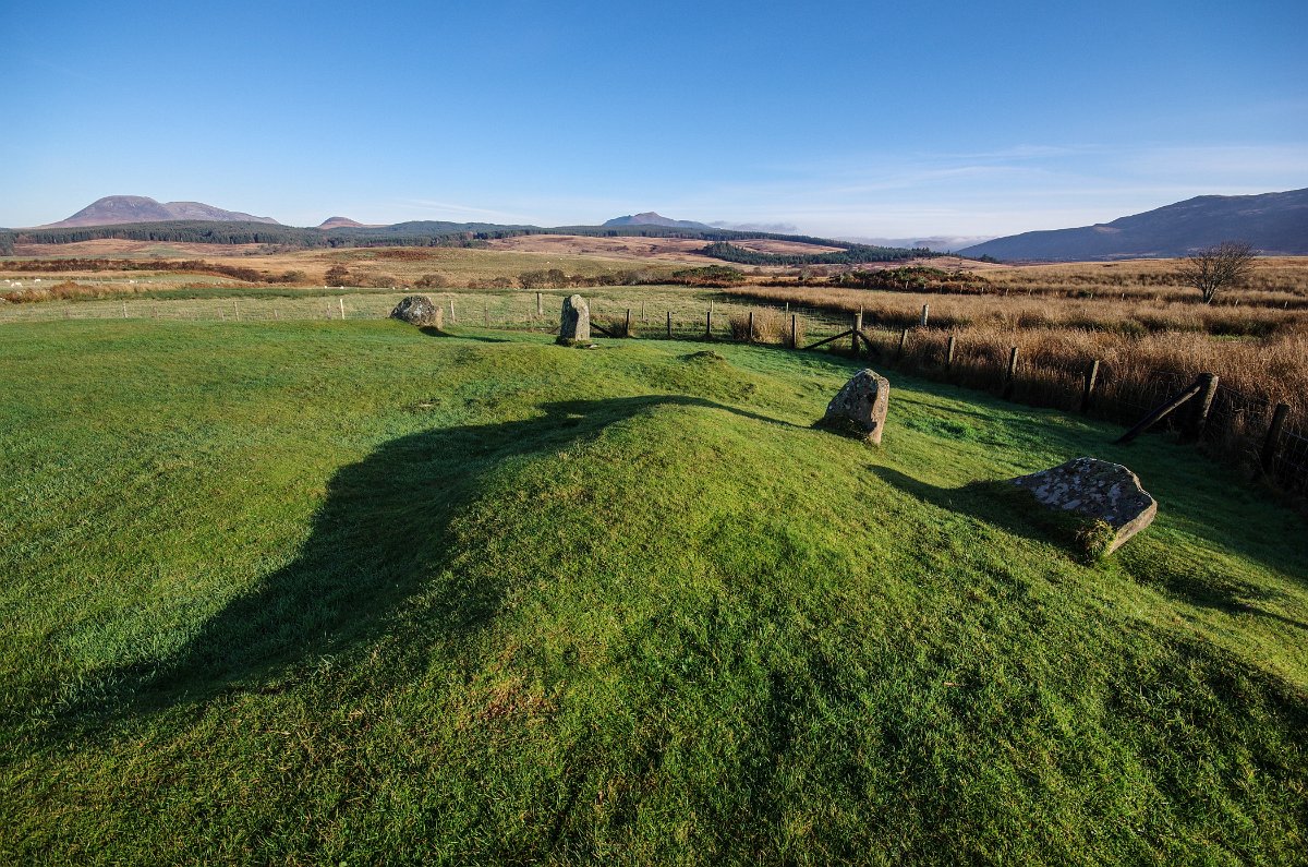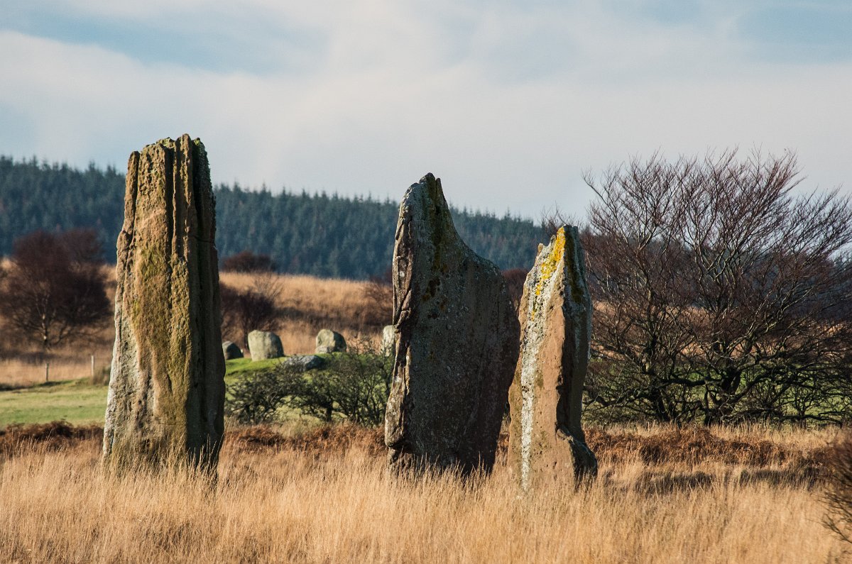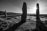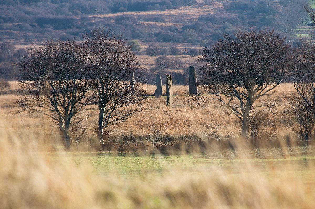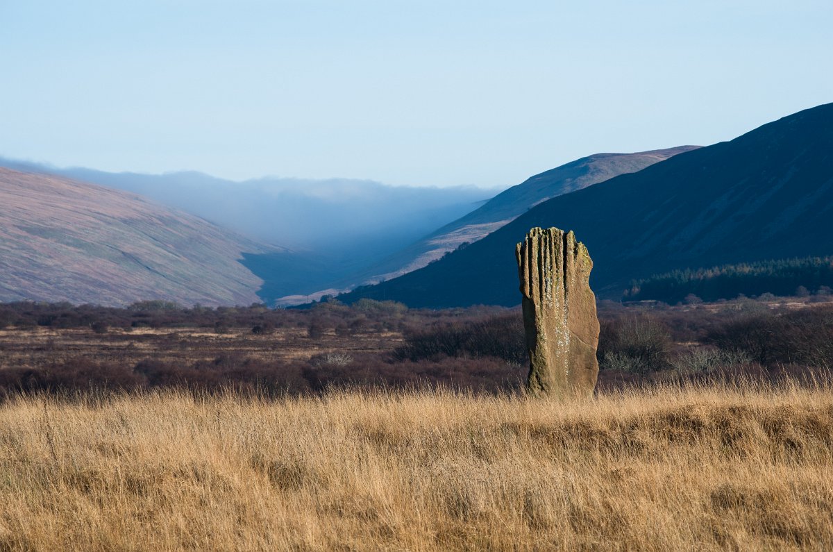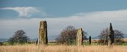 A to jsou ony! Nejslavnější monolity Machrie Mooru. První z nich stojí osamocený poblíž staré rozpadlé farmy Marchie Farm. 4 metrový monolit tak trochu připomíná lidskou ruku vztaženou k nebi. O kus dál v Machrie Moorském močálu najdeme další 3 velikány. Němí svědci dávných časů.