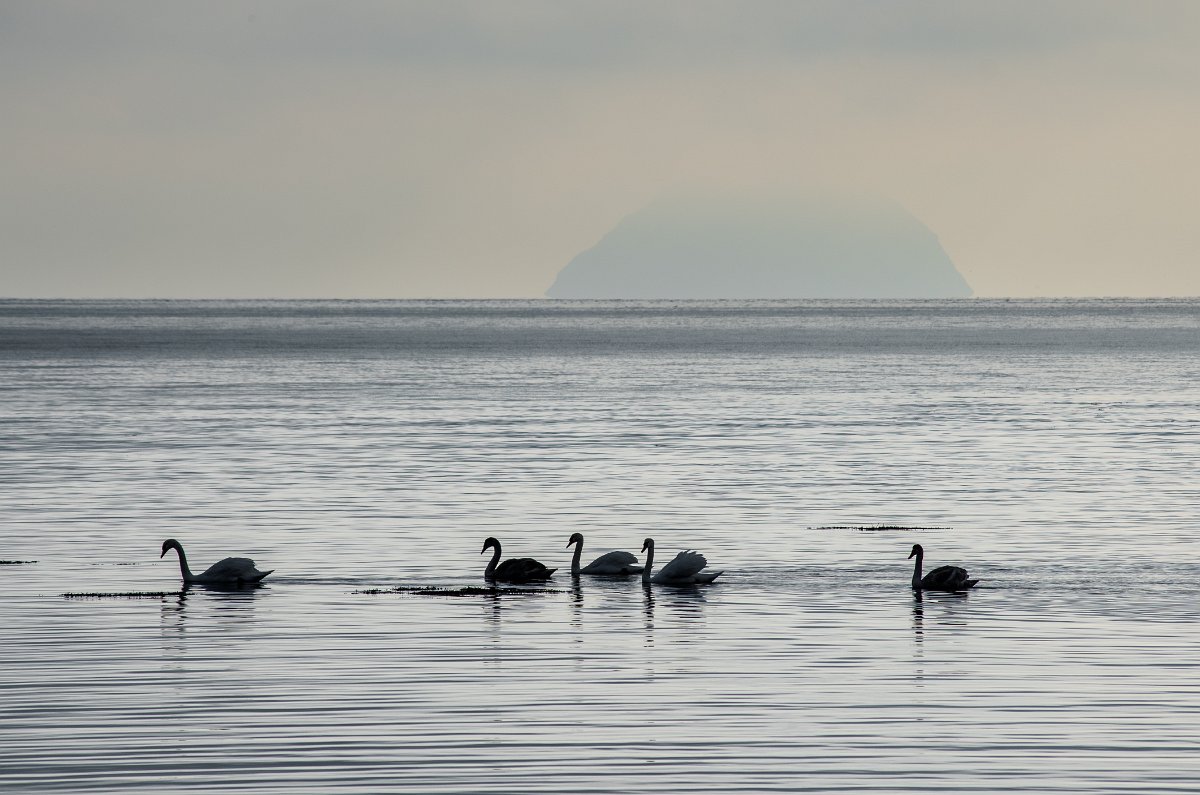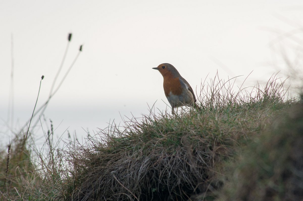Avšak zase obivujeme tajemný ostrov Ailsa Craig, který se z moře noří jako hřbet mořské příšery. A copak je tohle za podivný tvar? Přeci protahující se tuleň :) Tady zase startující volavka popelavá. Červenka obecná, anglicky řečená Robin. Odpoledne vyrážíme na procházku ze zálivu Whitning Bay k vodopádům Glenasdale Falls.