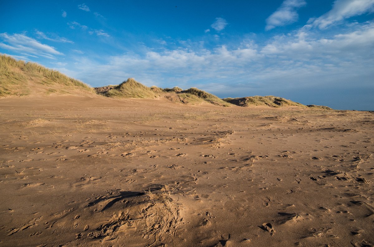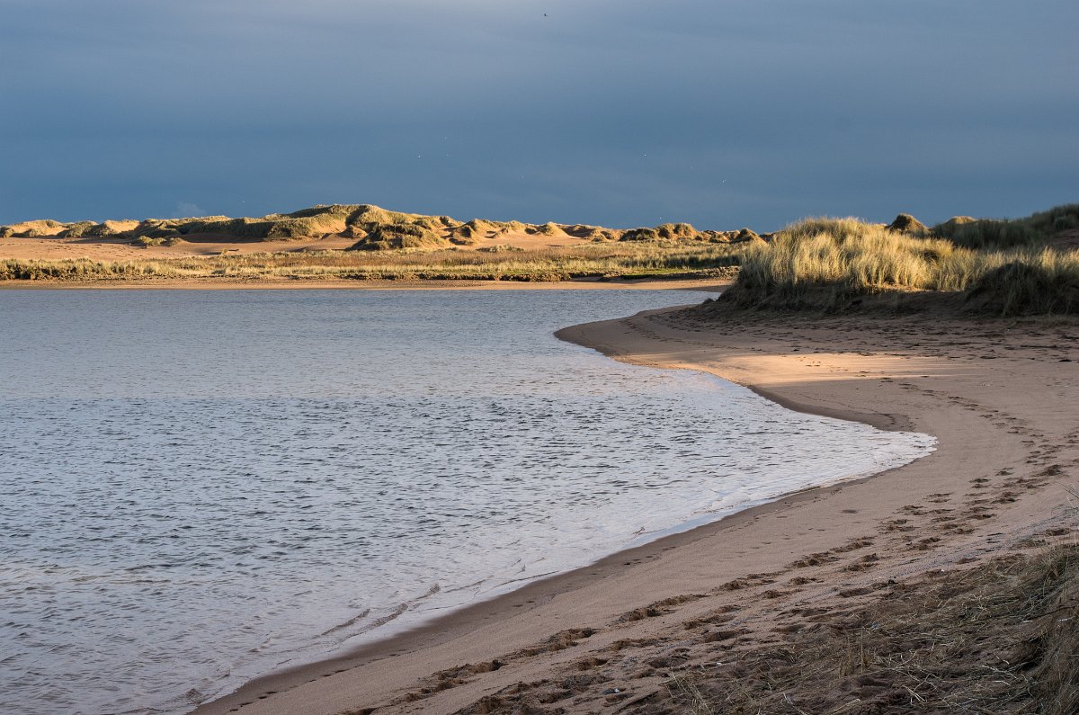 (5.12.2014) Na posledním letošním skotském výletě mi dělá milou společnost Caroline. Po třech měsících se znovu podíváme do přírodní rezervace Forvie, kterou jsem navštívil hned po svém příjezdu do Aberdeenu. Písečné duny ve Forvie navál věčně vanoucí vítr v ústní řeky Ythan severně od Abedeenu. Mohutné vrstvy písku lemující mořský břeh. Prosincové Severní moře ke koupání zrovna neláká, přesto je procházka velice příjemná.