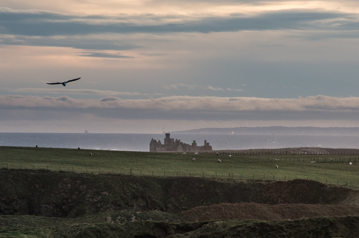 Ovšem ne vždy. Dospělí samci jsou agresivní rváči a běda člověku, který by se odvážil příliš blízko. I přes svou zdánlivou neohrabanost dokážou na krátkou vzdálenost "sprintovat" celkem rychle. Ale dost už bylo tuleňů. Vypravíme se o 10 kilometrů severně do zátoky Cruden Bay. Nad zátokou se na skále vypíná zřícenina hradu Slains Castle. A není to jen tak obyčejný hrad. Je to hrad strašidelný!