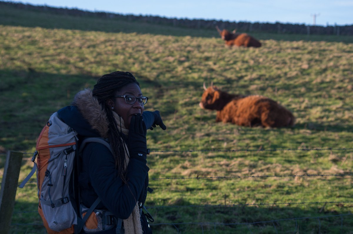 Na moři lze pozorovat čilý dopravní ruch. Ropné plošiny jsou nedaleko, stejně jako pevninské terminály pro zpracování surové ropy. A hurá na sever! Na jaře tyto útesy hostí tisíce opeřenců včetně vzácných papuchalků a terejů. Ale i v zimě je tu krásně! Srnka nám předvedla perfektní sprint. Hele je, slavné krávy Highladské!