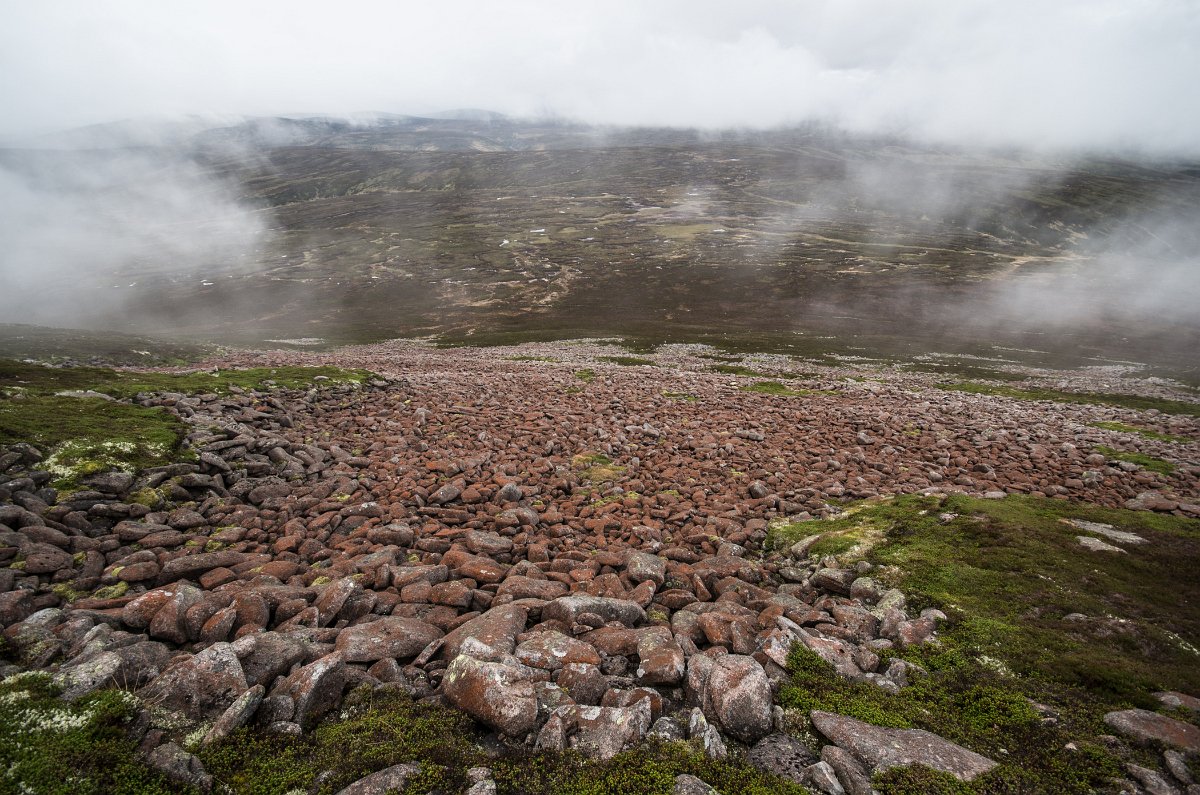 20 Sousední hora Braid Cairn má na svém kamenném temeni (=ve skotštině cairn) zajímavé geomorfologické útvary, zřejmě efekt gravitace a soliflukce.
