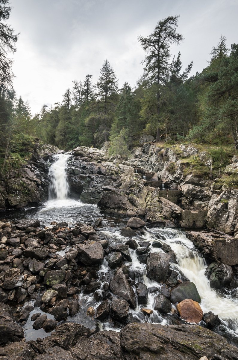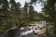 44 Scházím do údolí Glen (=údolí) Muick k žulovému vodopádu.