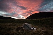 21 Světla kvapem ubývá a tak stavím stan na místě pěkně chráněným před větrem a vařím večeři. A při zápolení s neposlušným vařičem se kochám nádhernými červánky.