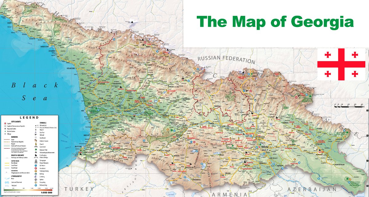 8Tourism_MAP_Page1 Gruzie - země, která je svou rozlohou (69 700 km²) o něco menší, než ČR a počtem obyvatel (4,5 mil.) míň než poloviční. Přesto je zde tolik krásných míst, že ani rok zde strávený by na to nestačil.