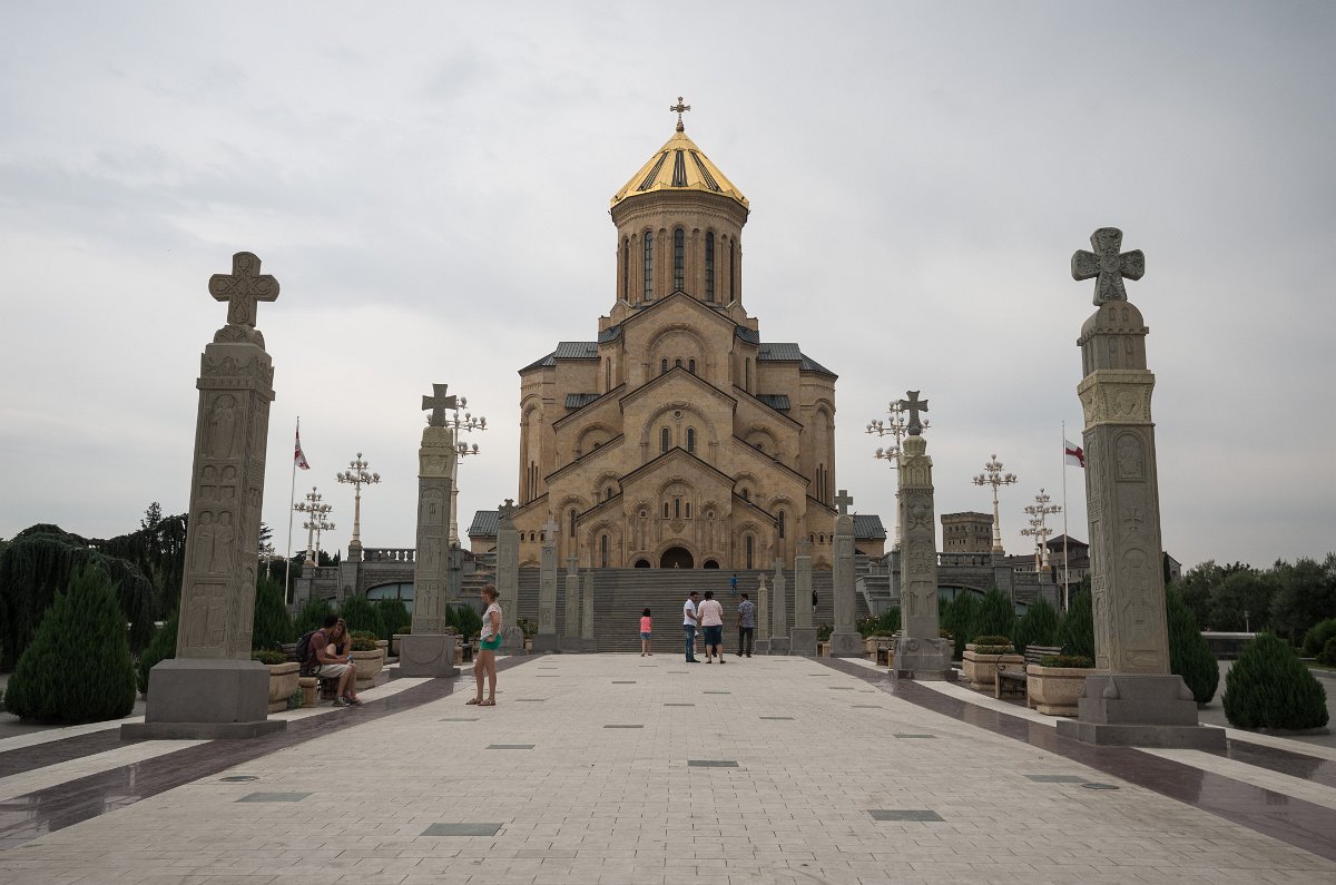 19 ...který stojí na útesu nad řekou Kura. A za ním stojící obří Katedrála Nejsvětější Trojice.