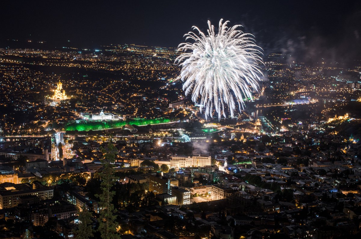 32 Nahoře jsme byli právě včas, abychom mohli pozorovat velkolepý ohňostroj k zahájení Evropského olympijského festivalu mládeže 2015, který v tu dobu v Tbilisi probíhal.
