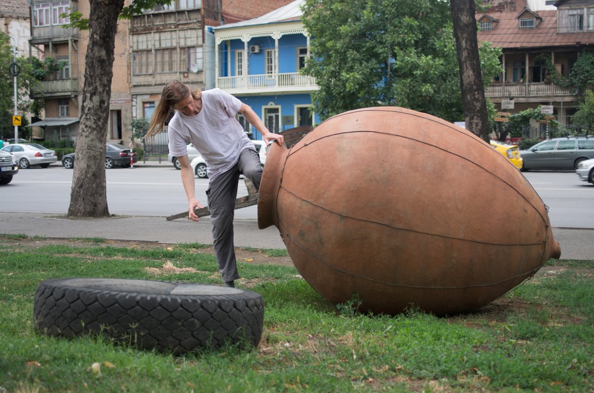 24 Výborné jsou také zdejší vinotéky. Na fotce Martin sice nevstupuje do vinotéky, ale do tradiční gruzínské nádoby na zrání vína - tzv. kvevri.