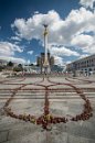 3 Majdan, neboli Náměstí nezávislosti, spolu s hlavní třídou Chreščatyk představuje centrum Kyjeva. Krvavé potlačení protestů proti režimu bývalého prezidenta Janukoviče připomínají svíčky a fotografická výstava.