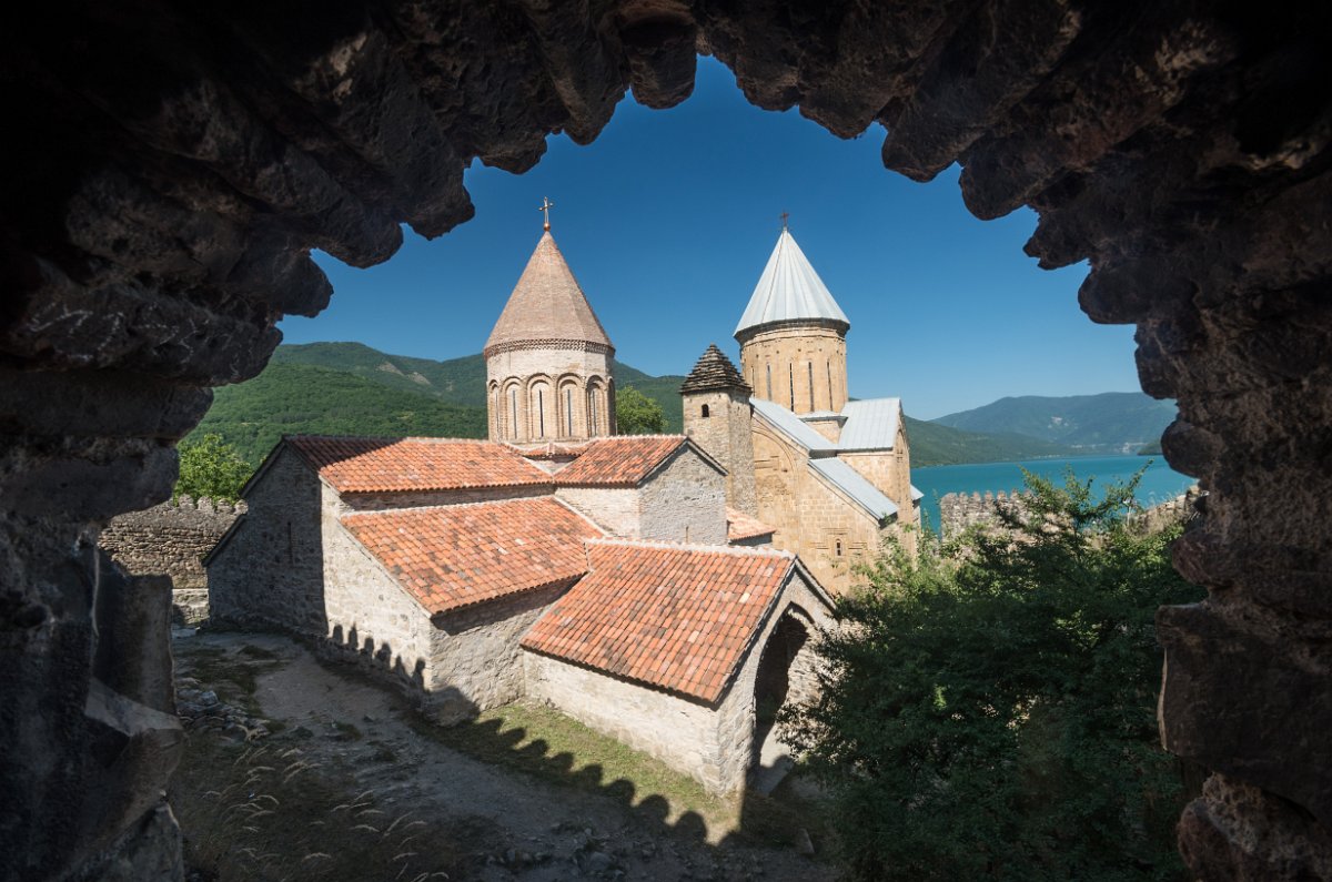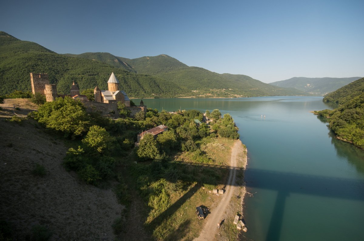 2 Pevnost Ananuri se vypíná nad přehradou Zhinvali a my máme pocit, že jsme se z ledových výšin Kazbeku přenesli na Jadran.