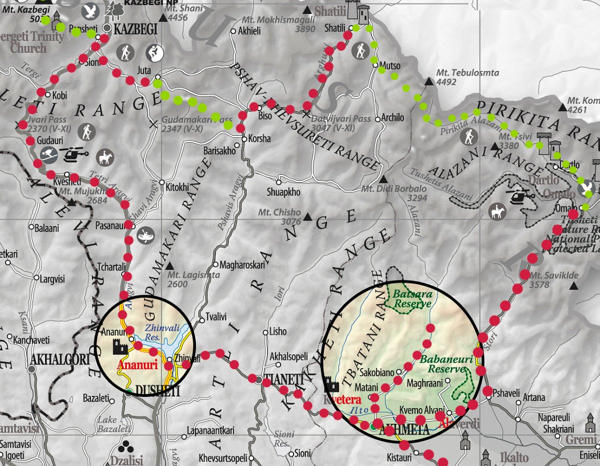 1Tourism_MAP_Page1 Zakončujeme náš okruh po Gruzii - z Kazbegi se vracíme kolem pevnosti Ananuri zpět do oblasti Kachetie.