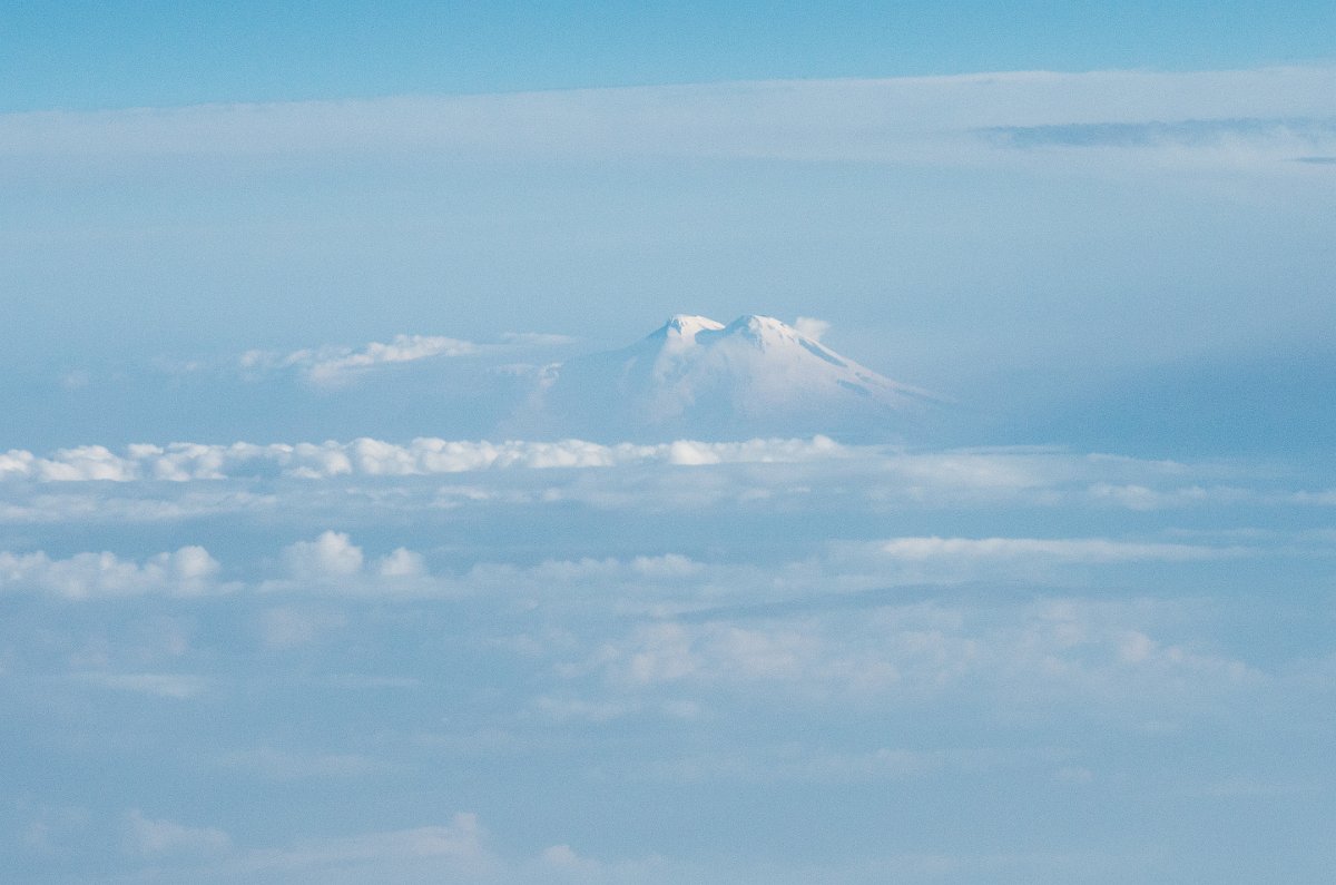 29 ....a dát sbohem Gruzii, Kavkazu a všem dobrým lidem tam. Z mraků nám na rozloučenou mává dvojvrchol Elbrusu a my víme, že tato výprava se opravdu povedla. Díky!