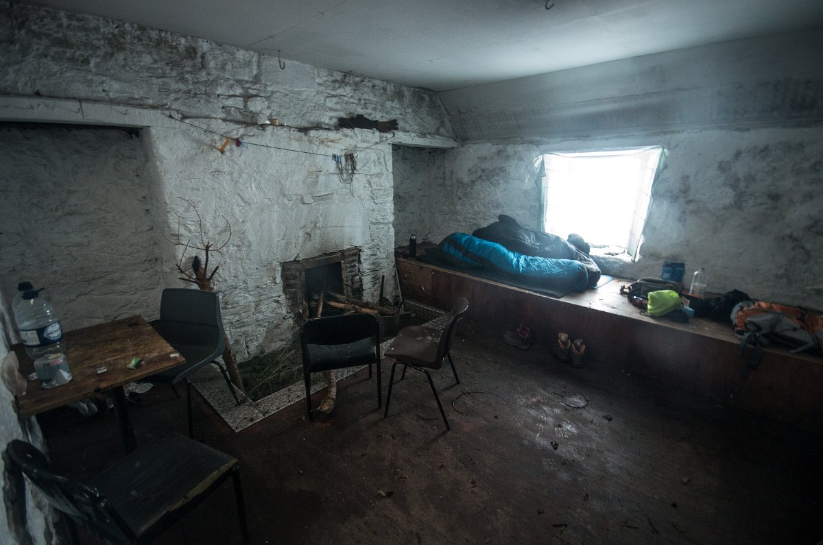 19 Bothies jsou volně přístupné horské útulny. Když je najdete, můžete zde přespat i zatopit si...no, jak kdo. I přes veškerou snahu se nám oheň rozdělat nepodařilo, protože dřevo bylo notně promrzlé a vlhké.