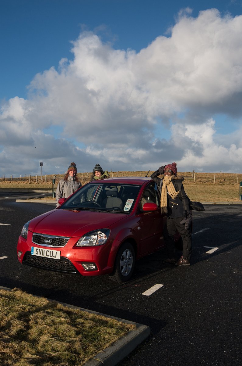 4 Přijíždíme do hlavního města Lerwicku, kde si půjčujeme červené autíčko značky KIA.