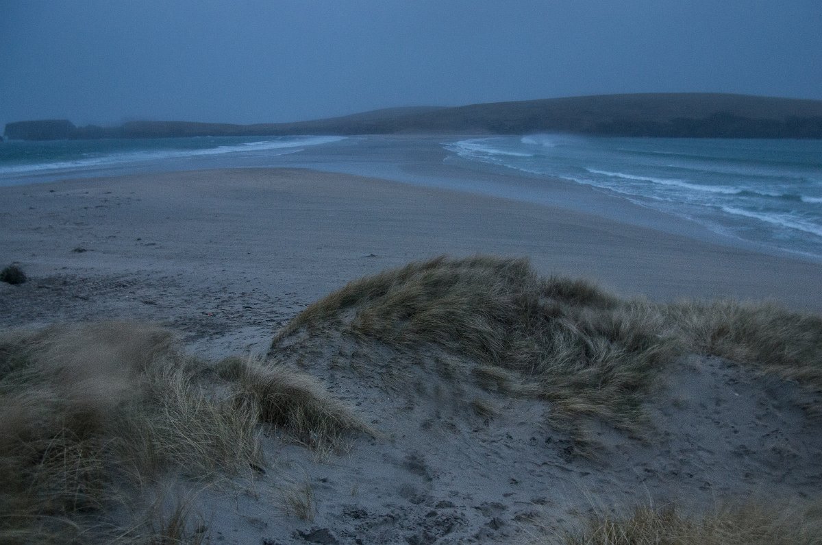 20 Pláž u St. Ninian´s Isle je známá tím, že za odlivu můžete na ostrůvek přejít suchou nohou. My jsme však měli tak nepříznivé počasí, že jsem byl rád, že mi písek a slaná voda nezničily foťák.