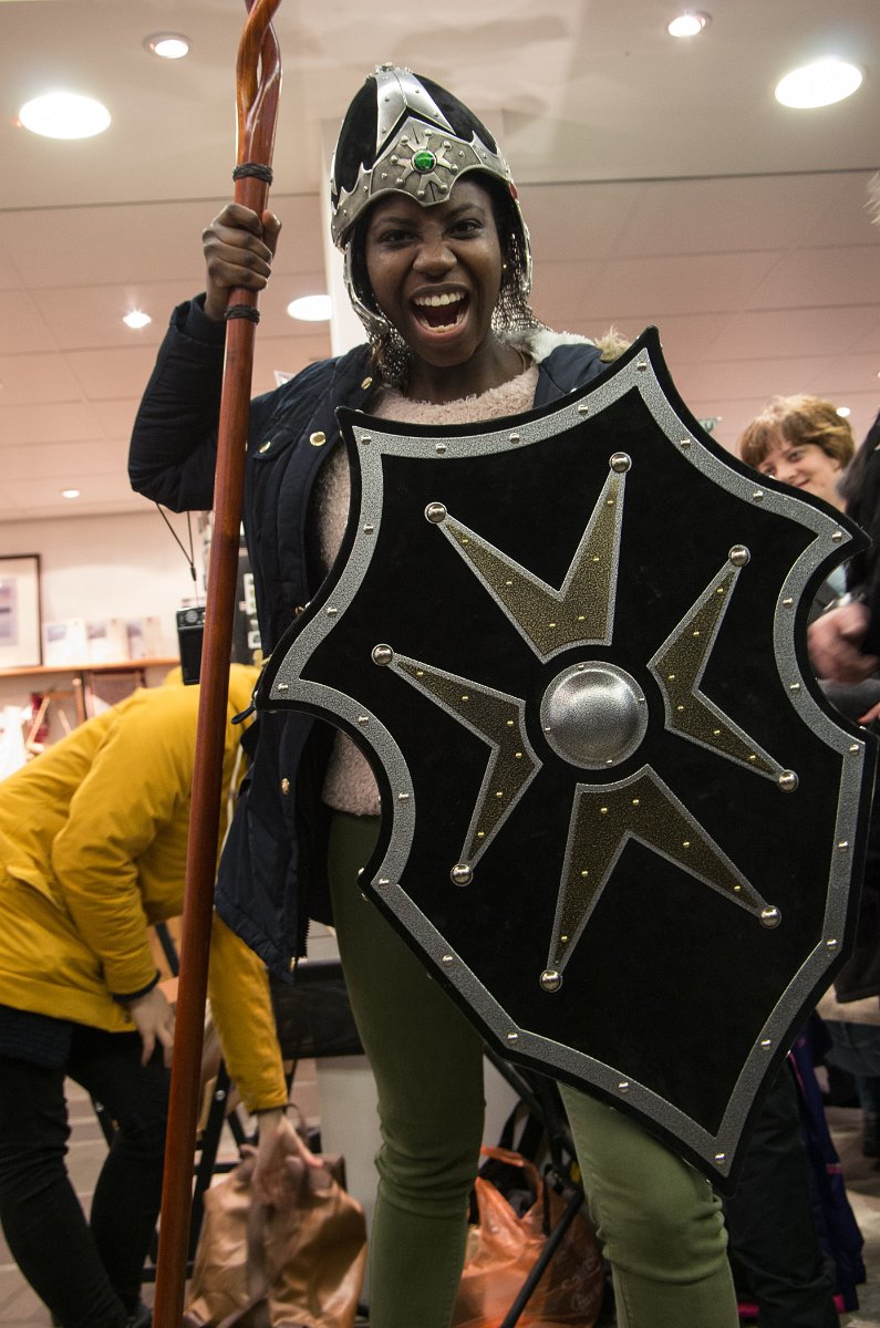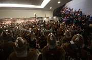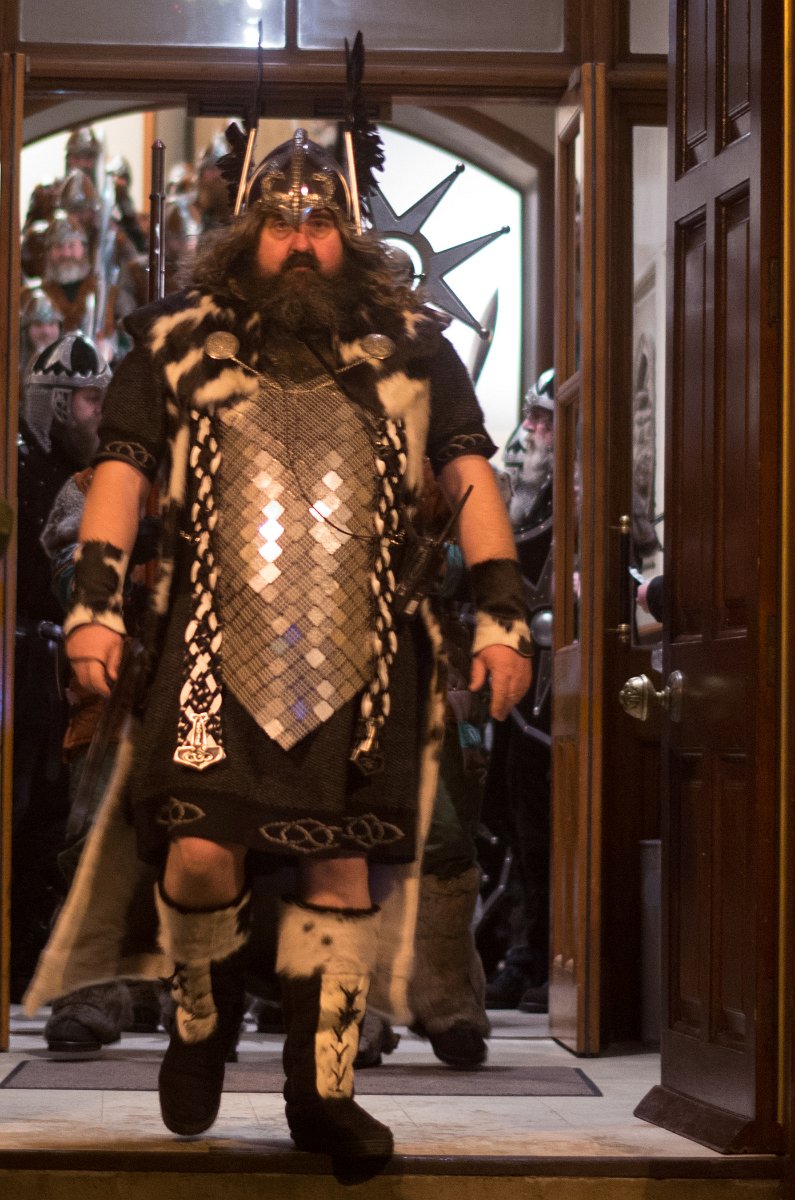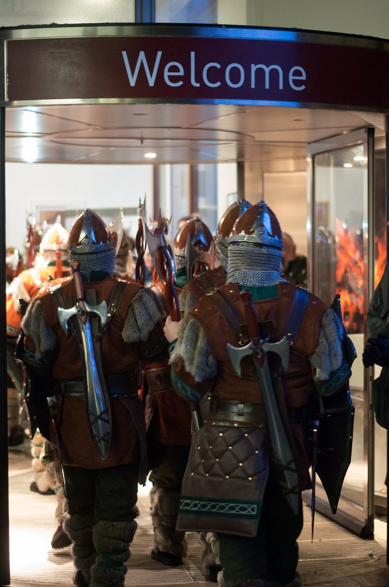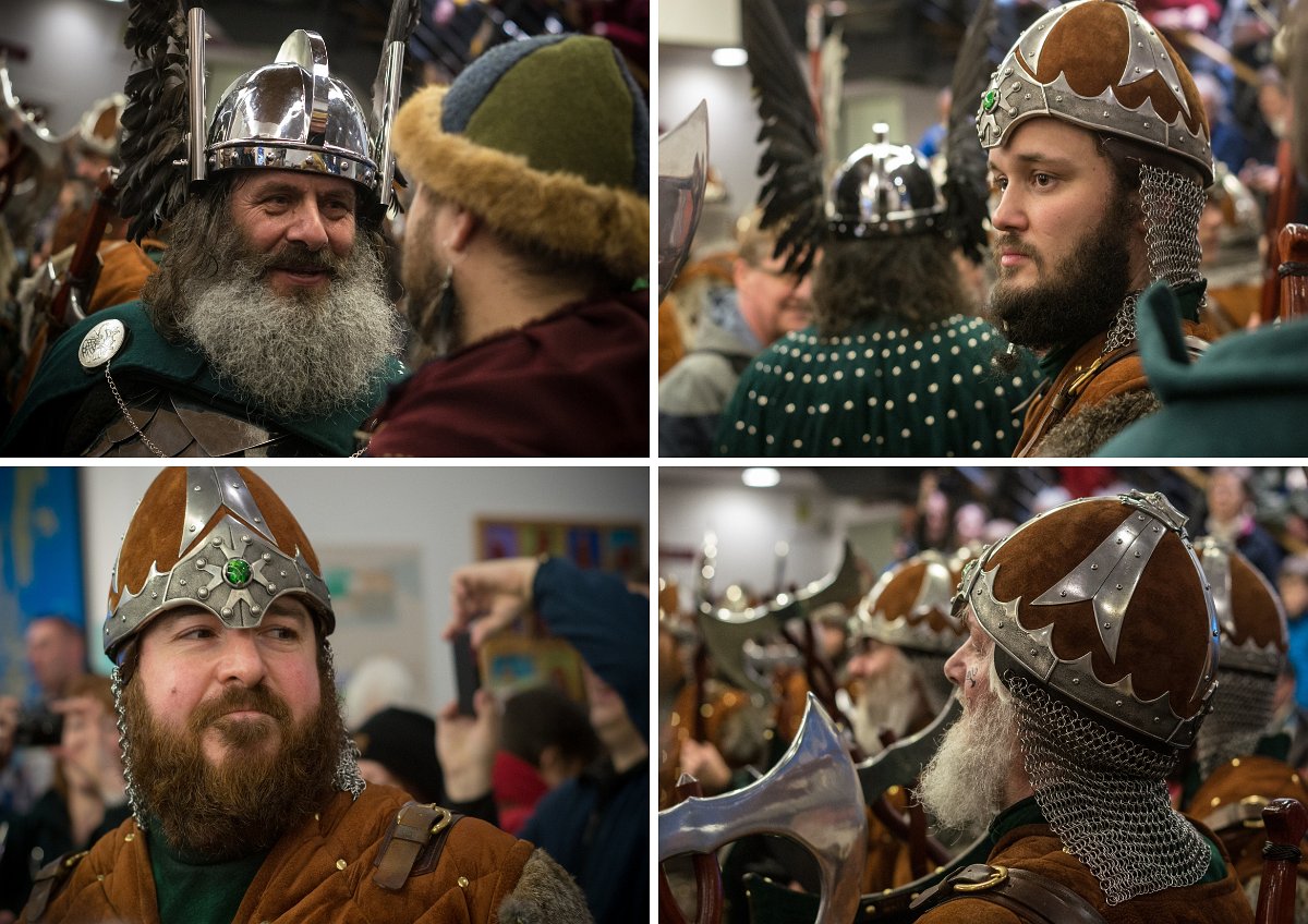 38 Desítky místních mužů se v den slavnosti nastrojí do vikingské zbroje. Pak tyto jednotky, tzv. Jarl Squad, pochodují městem a zpívají tradiční písně (zde zachyceni v místním muzeu).