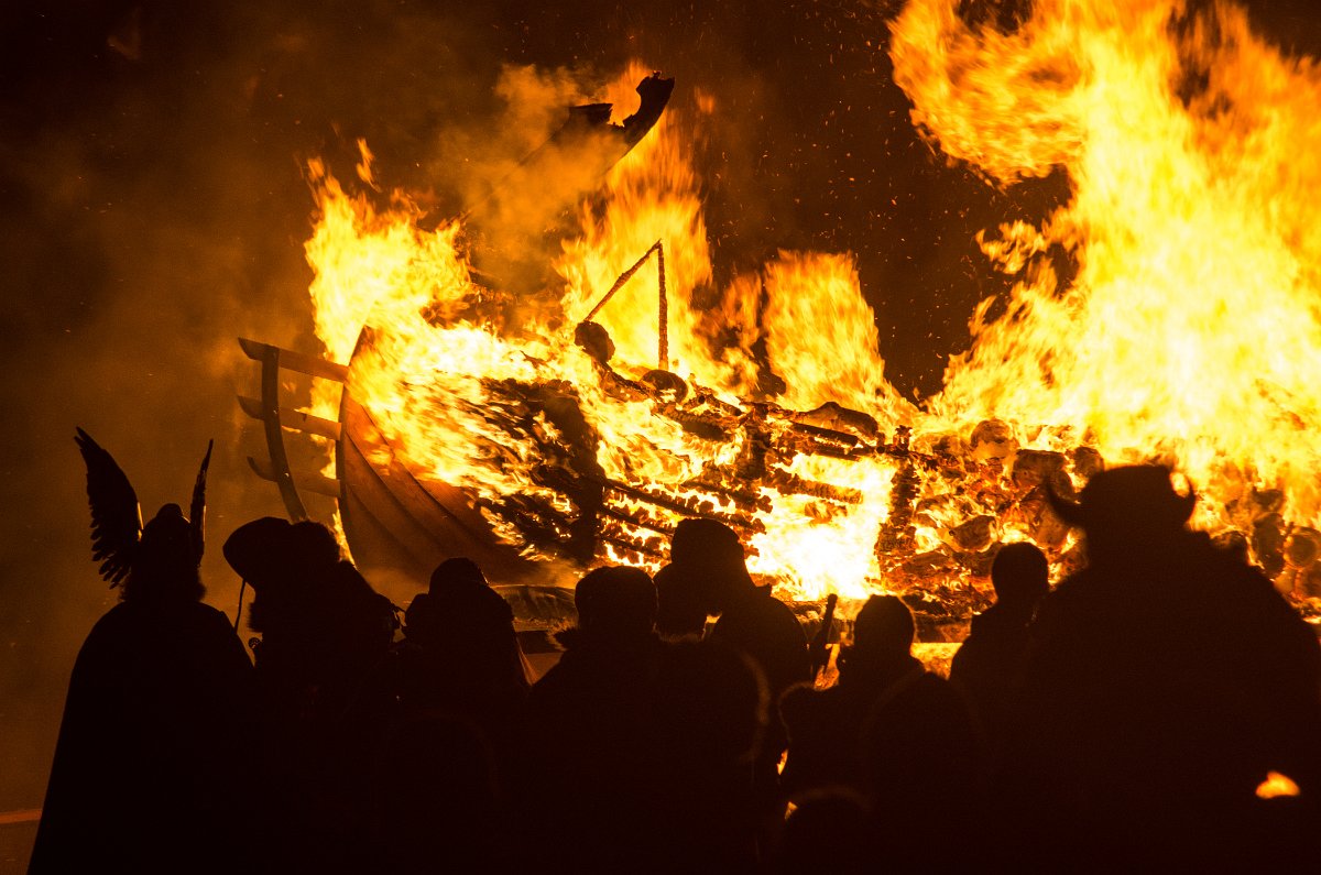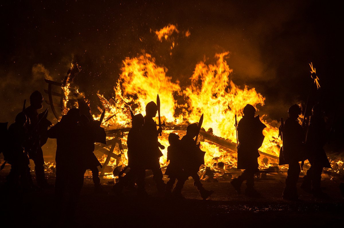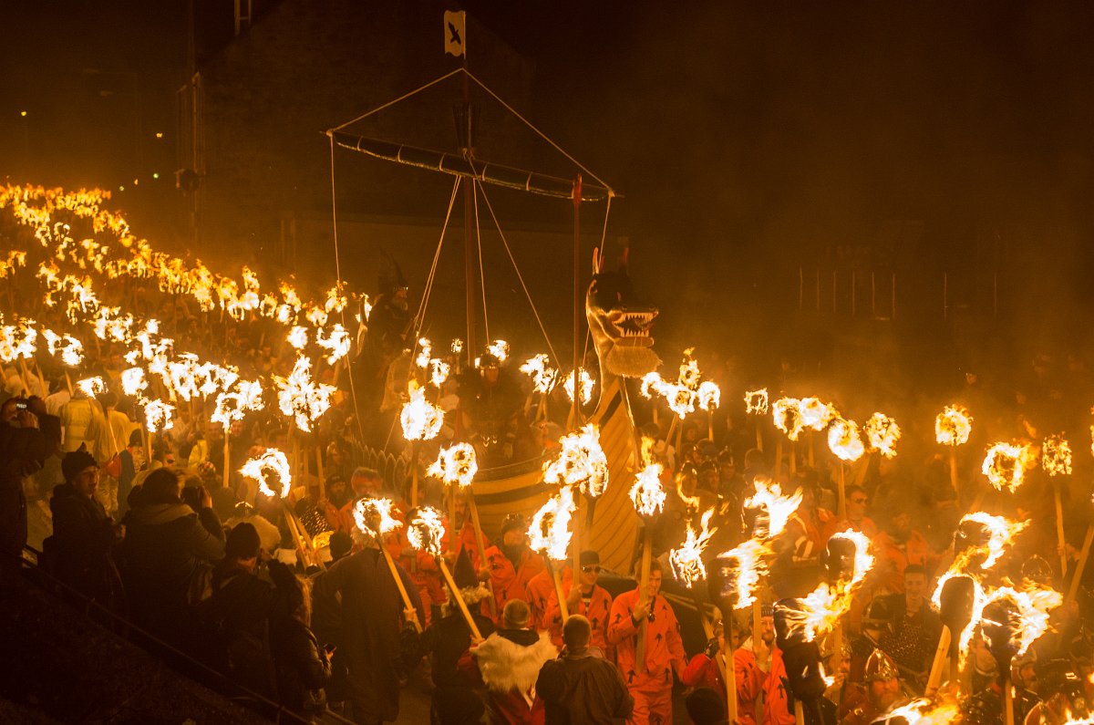 62 Festival Up Helly Aa je spíše jakousi efektní "replikou" opravdického vikingského pohřbu (byl zaveden v roce 1880), ale i tak se jedná o velice silný zážitek.