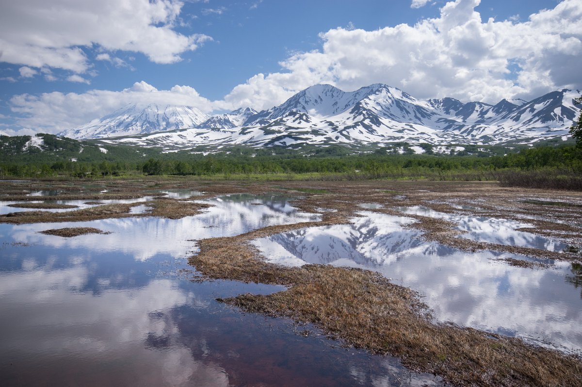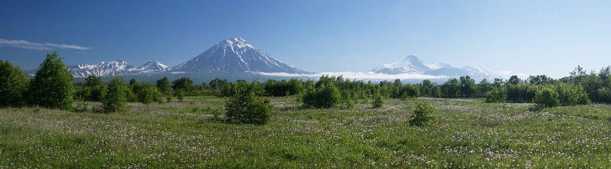 20 Obzor lemují vulkaničtí velikáni v čele s obřím kuželem Korjacké sopky.