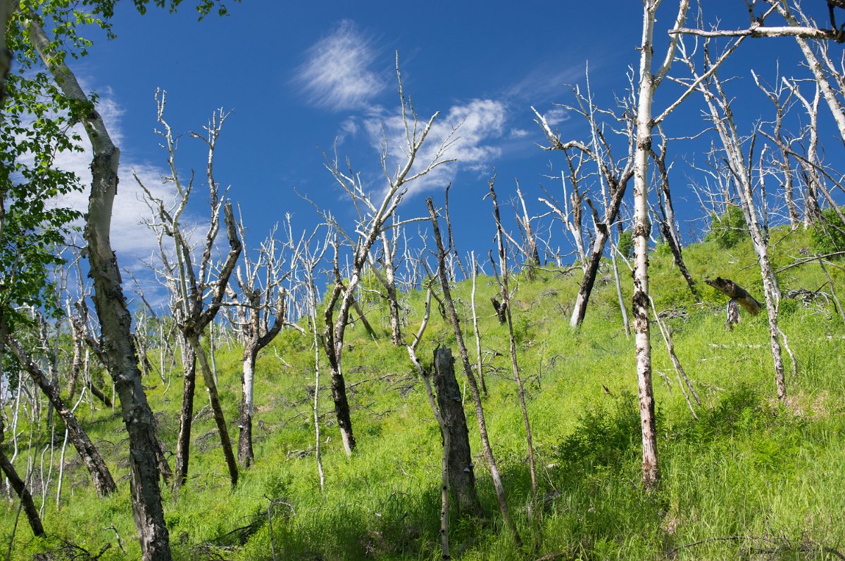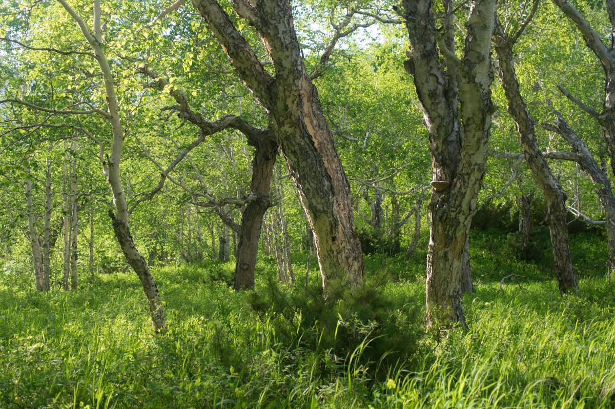5 V této části Kamčatky je tajga březová, tedy převažují porosty břízy bělokoré.