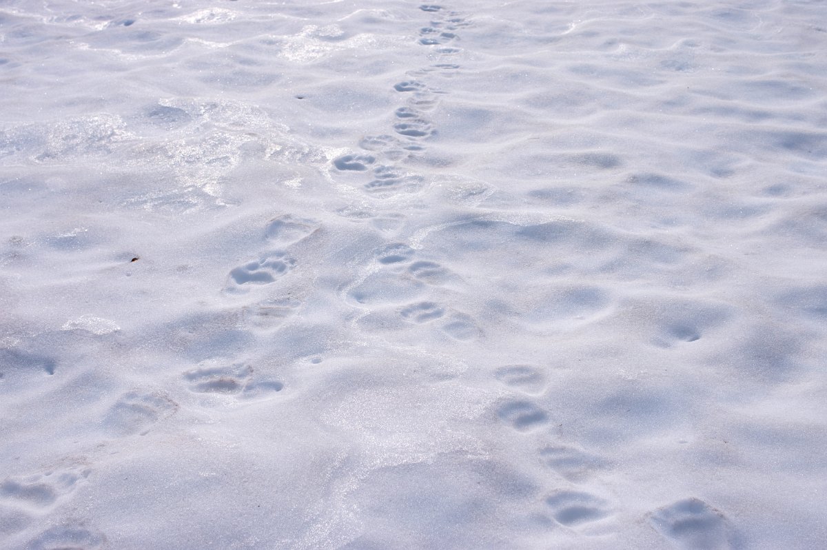 68 Podle všeho je to několikaroční mlaďoch, který se nedávno vyhrabal z brlohu a teď hledá potravu. Na lososy si musí ještě počkat (tah ryb ještě nezačal). Obchází nás uctivým obloukem a mizí za kopcem. My však pro jistotu zahrabáváme potravu hluboko do sněhu.