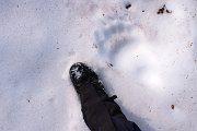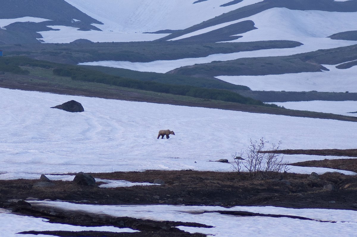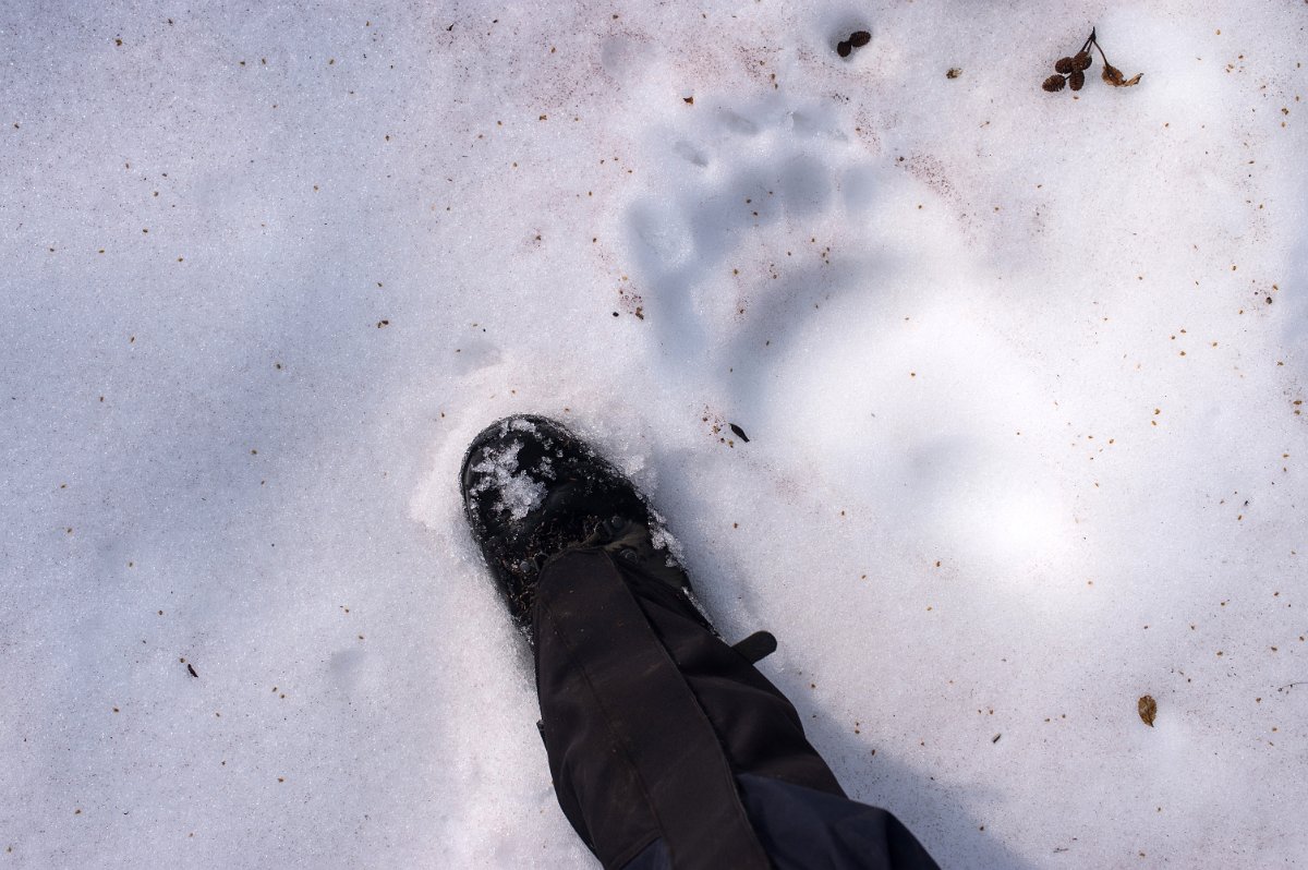 40 V bahně i na sněhu často nacházíme pobytový znak zdejšího největšího obyvatele. Medvěd kamčatský (Ursus arctos beringianus) je jeden z největších poddruhů medvěda hnědého. Je podobný medvědu grizzlymu, jen má mírnější povahu.