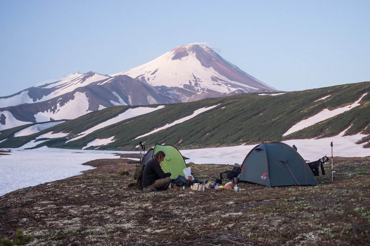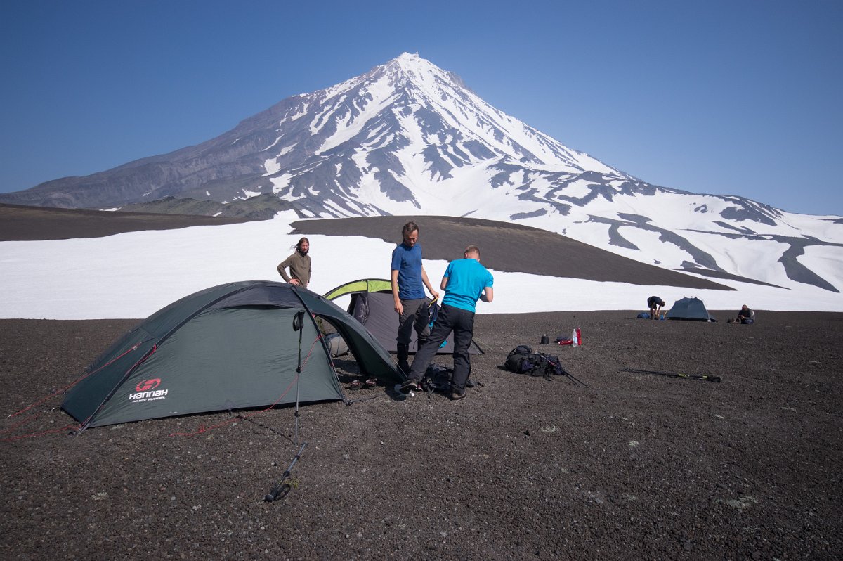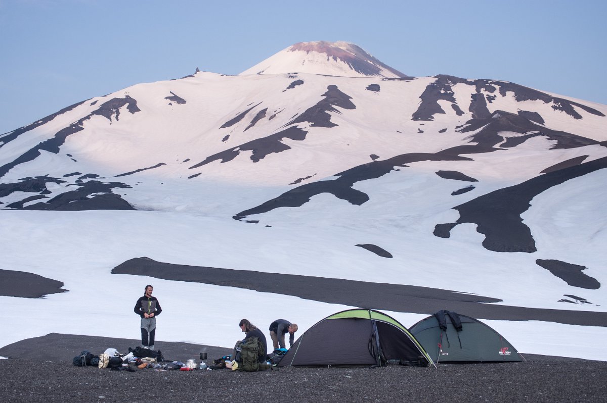 51 ...když konečně stavíme stany v Avačinském sedle. Uf, dalo nám to zabrat, ale jsme tu, obklopeni z obou stran dřímajícími draky!