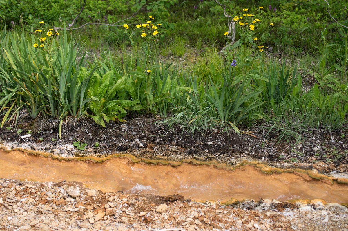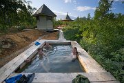 27 Voda odtéká úzkým přírodním korýtkem a o kousek dál již částečně ochlazená napájí horkou lázeň.