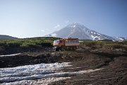64 Scházíme do Avačinského kempu, kde se dá přespat a právě sem jezdí jednodenní zájezdy s turisty z Petropavlovsku, které jsme na vrcholu sopky potkali.